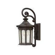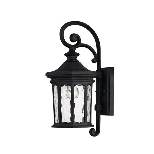 Raley's regal appearance features a bold Museum Black or Oil Rubbed Bronze finish, flourishing details and clear water glass panels for a dignified style statement.