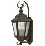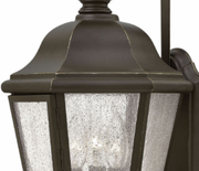 Edgewater's classic design features durable cast aluminum and brass construction in a rich Black or Oil Rubbed Bronze finish with clear seedy glass.