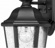 Edgewater's classic design features durable cast aluminum and brass construction in a rich Black or Oil Rubbed Bronze finish with clear seedy glass.