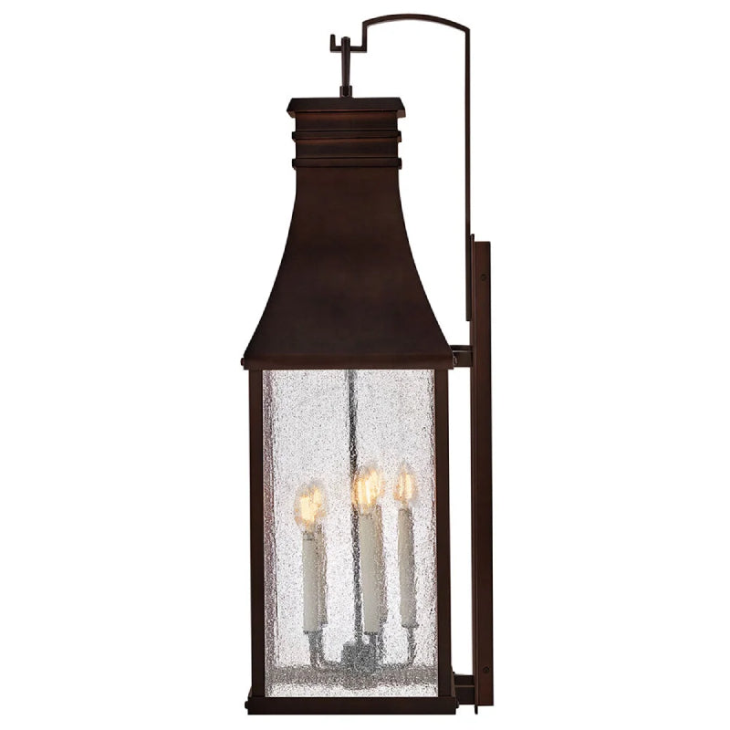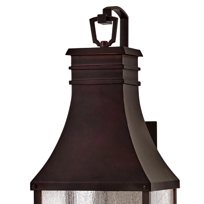 Taking inspiration from an English lantern, Beacon Hill achieves a timeless aesthetic. Part of the Heritage collection, this traditional style features a striking Blackened Copper or Museum Black aluminum frame. The heavily seeded glass pays homage to its Old World charm.