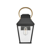 Dawson flaunts a versatile design with flair. A slightly tapered silhouette reveals simple lines that seamlessly frame clear beveled glass. Constructed of durable aluminum in Black, Dawson is complete with an oversized arching handle in a contrasting Burnished Bronze finish, reinforcing its transitional appeal.