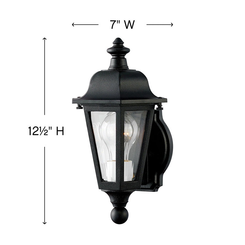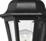 Manor House is a classic lantern design with clear beveled glass panels and a bold Black finish. Select-A-Lite options come standard with both candelabra and medium based sockets.