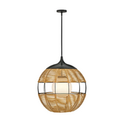 Maddox boasts an edgy, bohemian aesthetic with an open-weave design and geometric shape. This orb pendant features weather-resistant nylon rope in Black or Natural with an etched opal globe nestled inside. Maddox casts the perfect outdoor ambient light to accentuate modern outdoor living spaces.