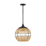 Maddox boasts an edgy, bohemian aesthetic with an open-weave design and geometric shape. This orb pendant features weather-resistant nylon rope in Black or Natural with an etched opal globe nestled inside. Maddox casts the perfect outdoor ambient light to accentuate modern outdoor living spaces.