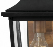 Burton’s classic cast aluminum construction in a robust Black finish is complemented by elegant touches. The distressed copper accents on the back plate, roof and socket cover paired with clear beveled glass complements the traditional styling.