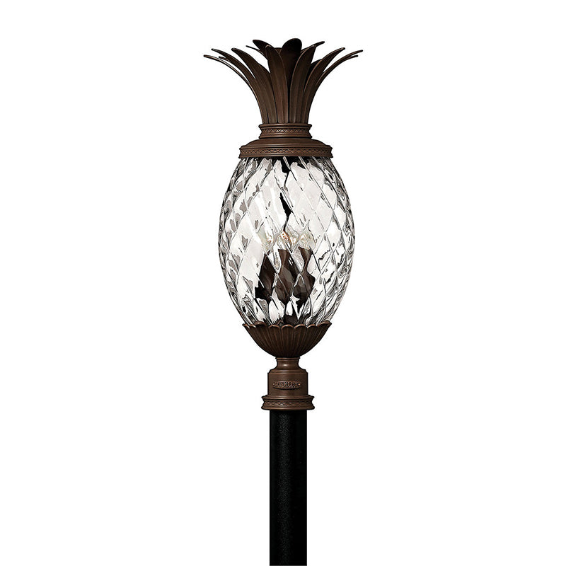 A Hinkley classic, the ornate Plantation collection features exceptional pineapple shaped, clear optic glass that makes a noble statement with matching candle sleeves and elaborate, decorative cast detailing.