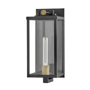 Striking and airy, Catalina breathes modern simplicity into outdoor spaces. Oversized clear glass, a unique single socket, and a two-tone Black with Burnished Bronze finish pair perfectly to present a statement-making fixture. The finishing touch is a floating effect created by the classic rectangular lantern design suspended from a top knob.
