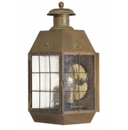 A Hinkley classic, Nantucket features a timeless New England design for the ultimate in vintage nautical chic. An Aged Brass finish, clear seedy glass panels and durable solid brass construction add to its retro appeal.