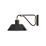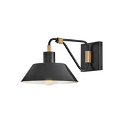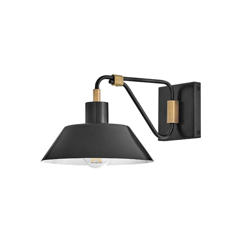 A modern twist on the industrial barn light, Brewster perfectly sets the stage for any décor style, indoors or outdoors. A large classically styled shade features a Black Oxide finish accented by chic Heritage Brass details.