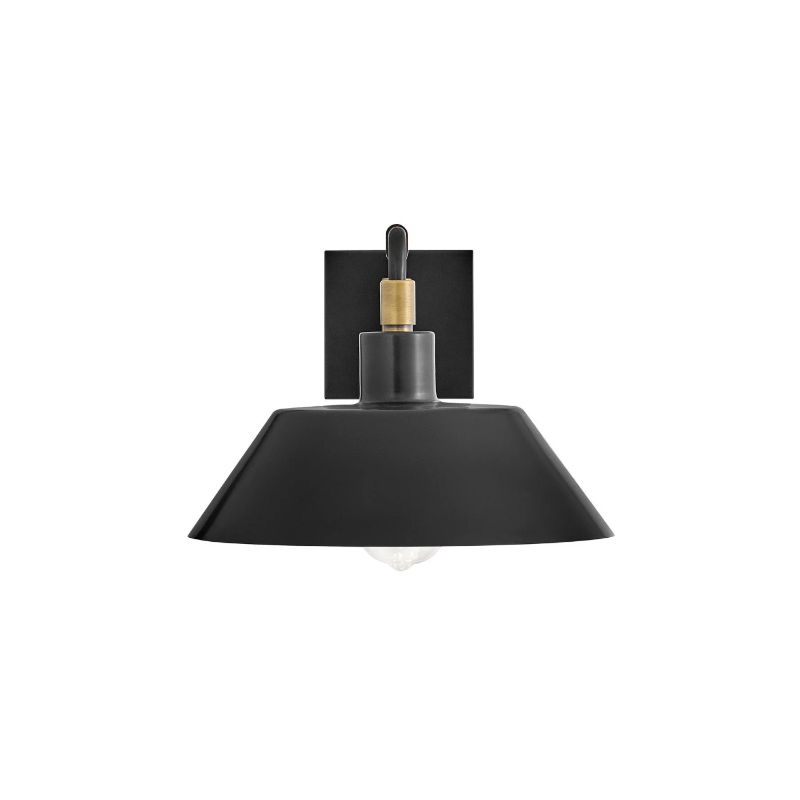 A modern twist on the industrial barn light, Brewster perfectly sets the stage for any décor style, indoors or outdoors. A large classically styled shade features a Black Oxide finish accented by chic Heritage Brass details.