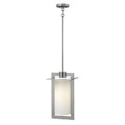The sleek lines of Colfax feature intersecting planes of stainless steel or aluminum and a chic cylinder of etched opal glass, create a sophisticated geometric form bringing an Arts & Crafts flair to the transitional design.