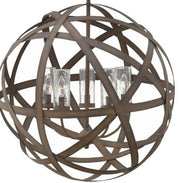 Carson pairs a hint of industrial sophistication and repurposed craftsmanship with its bold overlapping metal ribbons. The hand-crafted pendants in an Iron Rust finish are suspended from an aged rope column for a subtle touch of reclaimed charm.