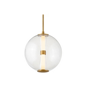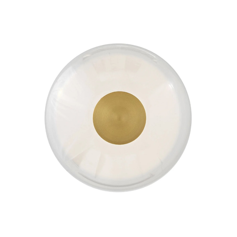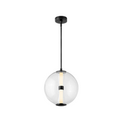 The centerpiece of Elin's bold and contemporary design is its sculpted clear glass that highlights an integrated LED inner light source. Featuring both conventional and striking elements, Elin is ideal for modern and transitional interiors and available in Black or Lacquered Brass finish options.