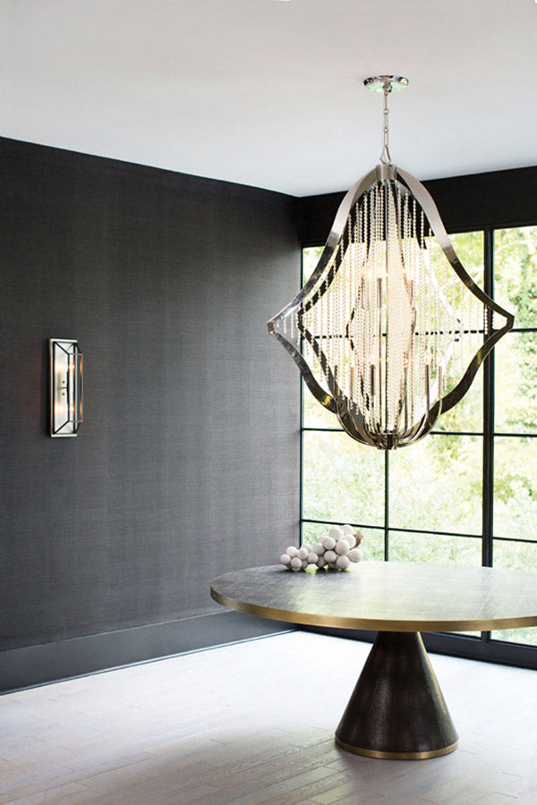 Fulton’s minimalist beauty emphasizes ‘less is more’ with vintage industrial style. This clean, airy tapered cage design is constructed without glass and the unique square candle sleeves rest on a discreet “H”-shaped cluster.
