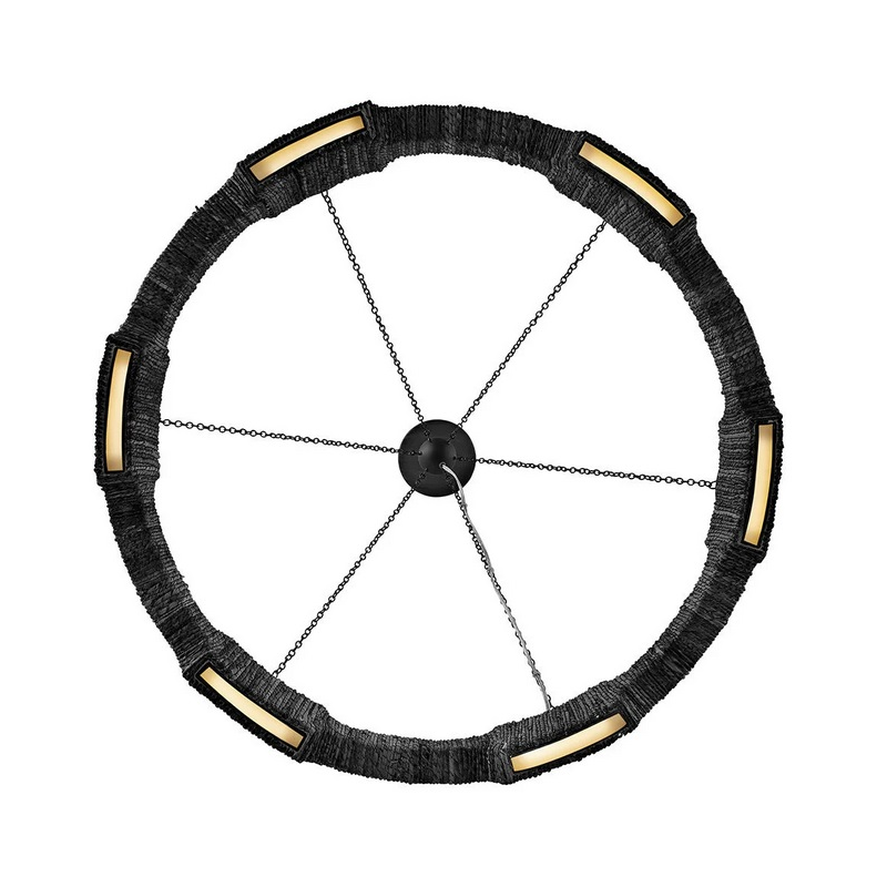 Raffi's coastal bohemian vibe is balanced by its distinctively modern shape. A unique LED design offers abundant light, while a slim frame hand-wrapped in natural reeds provides unexpected texture. Bold Carbon Black or Burnished Gold finishes perfectly complement any color palette.