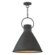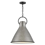 The profile is simple, hardworking and meant to reflect the farmhouse style it complements so well. A metal shade in Dark Antique Brass, Rustic Pewter, Polished White or Aged Zinc, it features a bottom ring and an oversized loop in Textured Black. Wiring is threaded through the loop, instead of being exposed, which ensures the look remains clean, casual and tasteful.
