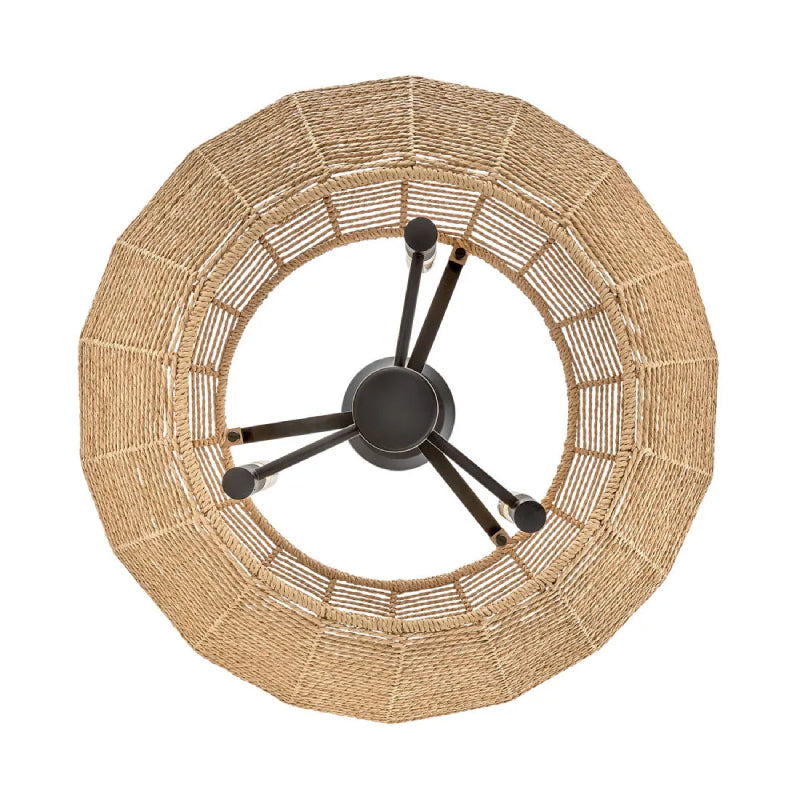 Luca's coastal vibe is permeated with a slightly exotic edge. The bold pendant showcases a robust, woven drum shade.