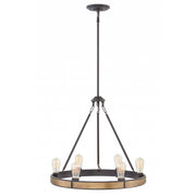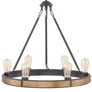 The striking hammered plates are a distinctive focal point in Everett’s design. Amplifying its unique look is the rich two-tone finish, imparting a refined elegance to this modern yet rustic chandelier. The use of vintage bulbs is recommended.