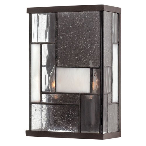 Mondrian's unique patterned panels of glass mounted in copper foil adds geometric panache in a Buckeye Bronze finish.