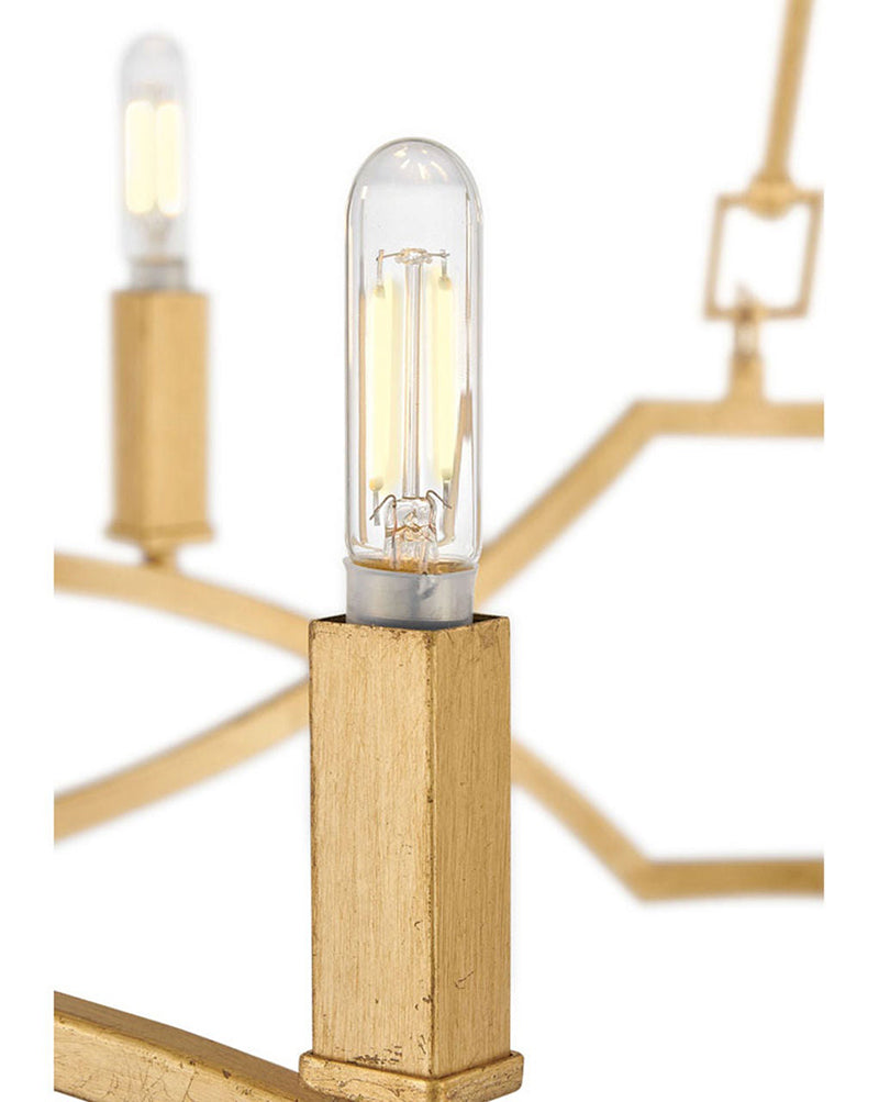 Leona's decorative scrollwork is crafted from a gently curved, smoothly welded frame finished in hand-leafed Distressed Brass. Clean shapes complemented by exposed candelabra lamps create a family of formal fixtures with undeniable charm.