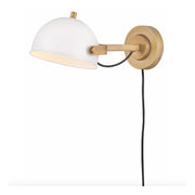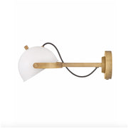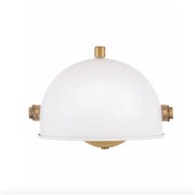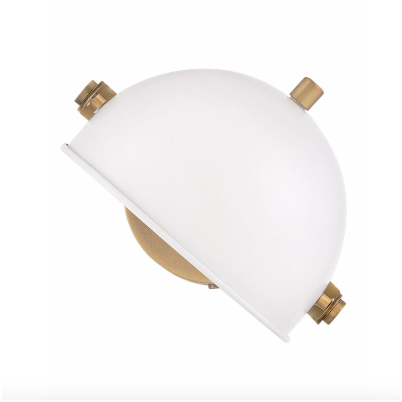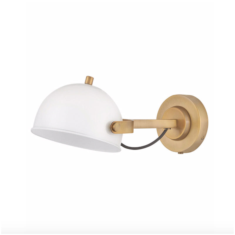 A modern bedside sconce with a vintage feel, Spence's adjustable, rotating shade, painted white interior, and convenient on/off switch create the ideal reading or task light. Heritage Brass details and removable, black, fabric-wrapped cord complement a Black Oxide or Chalk White finish.