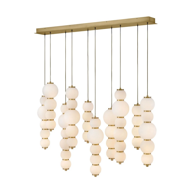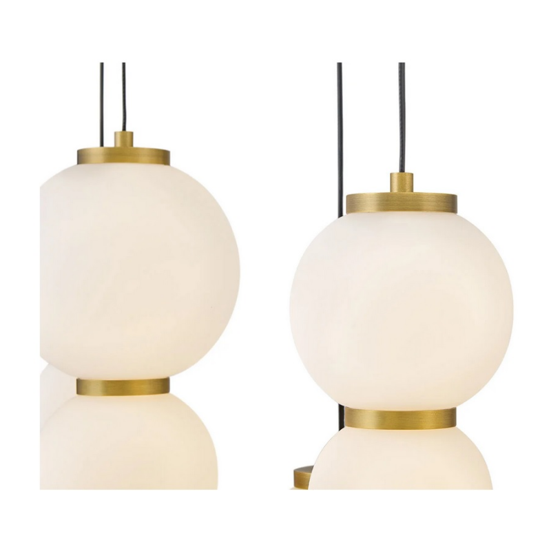 Inspired by the enduring allure of pearl jewelry, Trigo’s softly cascading silhouette makes a dramatic yet elegant statement. Glowing etched opal glass globes of varying sizes create a visual rhythm and organic flow that echo the natural imperfections and unique beauty found in genuine pearls. Differences between each globe add depth and movement, combining classic beauty with modern coastal design and offering a harmonious blend of tradition and innovation.