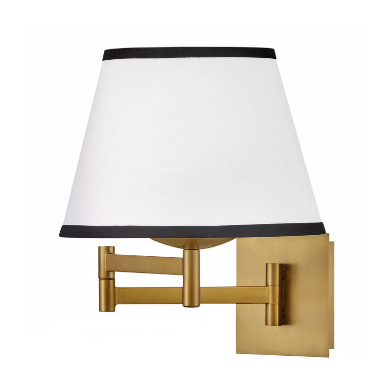 A take on traditional sconce styles, Sonia’s tapered shades feature contrasting top and bottom binding.