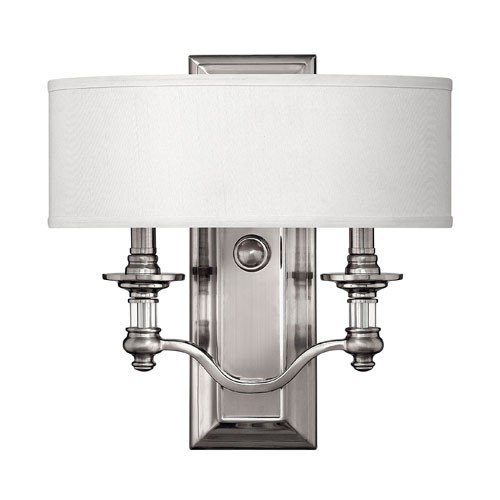 Sussex offers traditional charm with an edge of modern luxury. Offered in Brushed Nickel finish with white fabric hard back shades or English Bronze finish with ivory fabric hard back shades, the clear glass column and candles add to its sophistication.