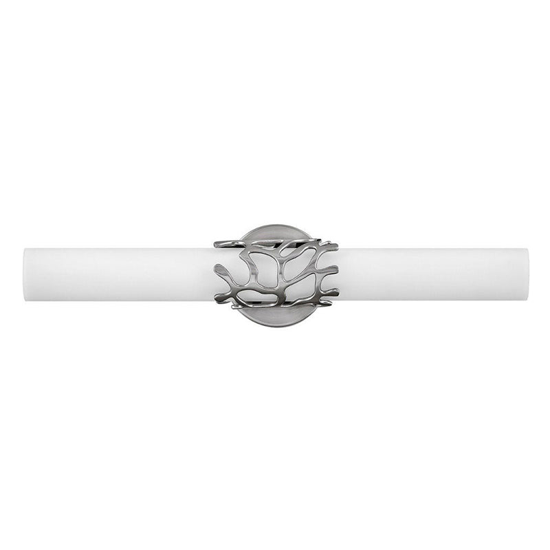 Projecting a sense of maritime wonder, Lyra embraces modern technology without sacrificing its timeless coastal allure. An eye-catching die-cast coral bracelet centers the design and wraps etched opal glass. The transitional silhouette can be mounted horizontally or vertically with an unseen Invismount system that showcases the clean, elegant look. Offered in a variety of finishes, Lyra is sure to embellish any space.