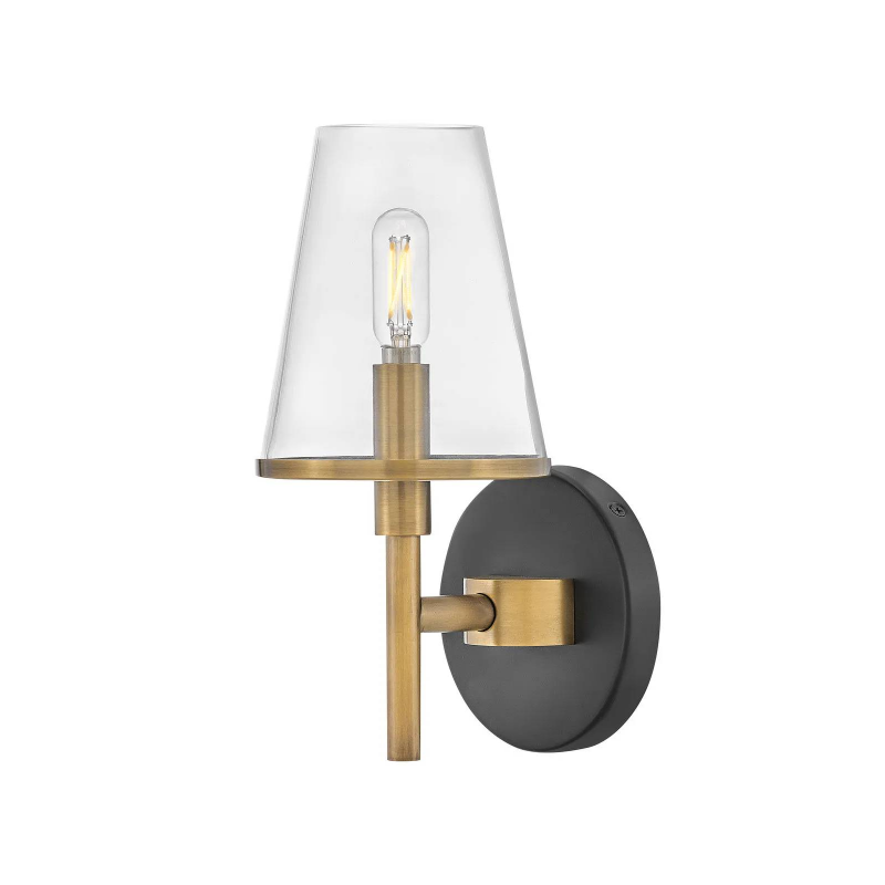 Marten has a clean, crisp look that brings striking transitional elements to any décor style. Clear glass shades have a Heritage Brass rim, perfectly complementing the Black back plate to tie the aesthetic together. The clean lines provide the satisfaction of balanced symmetry while giving off ample light.