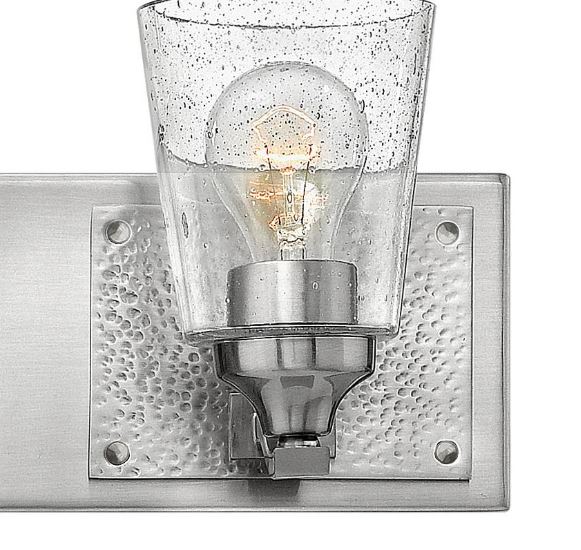 Jackson merges traditional details such as clear seedy glass, finished glass collars and a distinctive hammered Nickel accent plate to create a seamless, polished look that is at home in a rustic lodge or an urban loft.