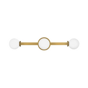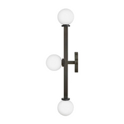 Audrey gives a modern nod to vintage Hollywood vanity lights thanks to luxurious finishes and beautifully knurled details that offset etched opal glass globes. Audrey incorporates the best of both transitional design elements and mid-century-inspired style. Available in Heritage Brass or Black Oxide finish options, this versatile fixture can be mounted horizontally or vertically for added customization.