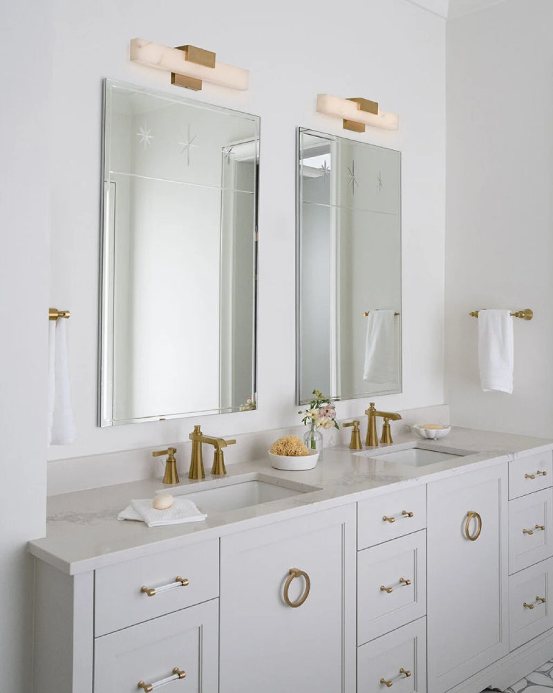 Cadiz celebrates the beauty of organic details in its large natural alabaster panels. Every element is softly illuminated by dimmable, integrated LEDs, emphasizing the stone’s unique variations in color and pattern. Modern metal features are finished in Brushed Nickel, Black Oxide, or Heritage Brass.