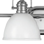 Rowan’s classic, yet contemporary look never goes out of style. Style details like its stepped Chrome backplate and industrial metal shade in Polished White are suitable for multiple decors. The harped fitter tops each dome with a decorative crowning touch.
