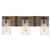 The fresh, rustic design of the Sawyer collection will enhance any living experience with a warm, cozy ambiance. The Aged Zinc finish with Distressed Black accents or Sequoia finish with Iron Rust accents paired with clear seedy glass offer a farmhouse chic style.