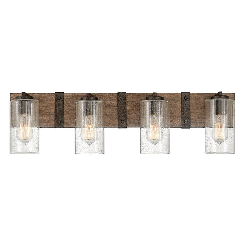 The fresh, rustic design of the Sawyer collection will enhance any living experience with a warm, cozy ambiance. The Aged Zinc finish with Distressed Black accents or Sequoia finish with Iron Rust accents paired with clear seedy glass offer a farmhouse chic style.