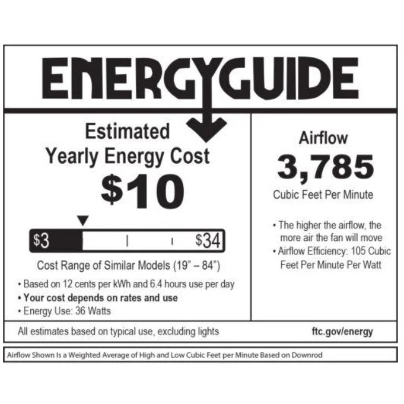 - Airflow Efficiency: 103 cubic ft per minute per watt