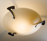 The Antasia ceiling light featuring sinuous curves of iron cradling a glass bowl and the bowl itself, that looks like a dome of water ready to stretch into a drop, was inspired by the art Nouveau movement. Created by artisans at our forge here in Vermont.