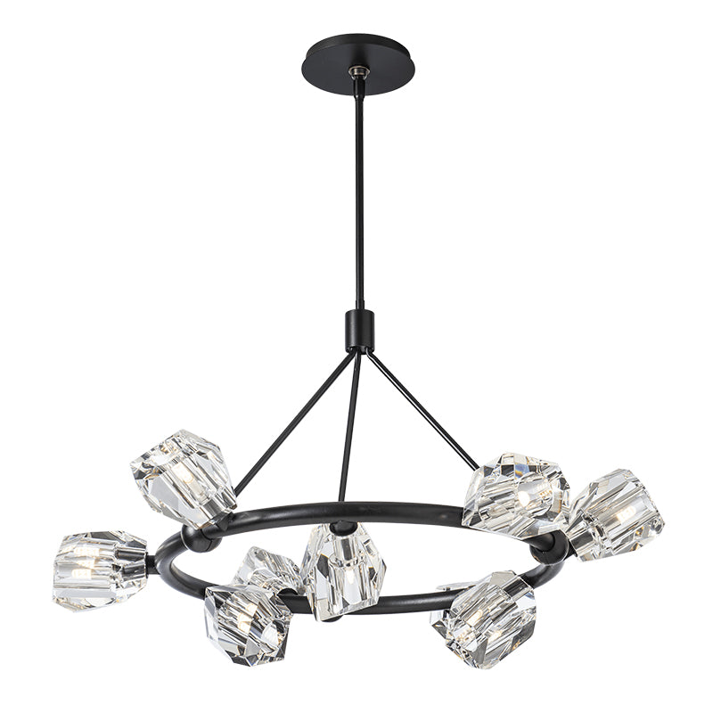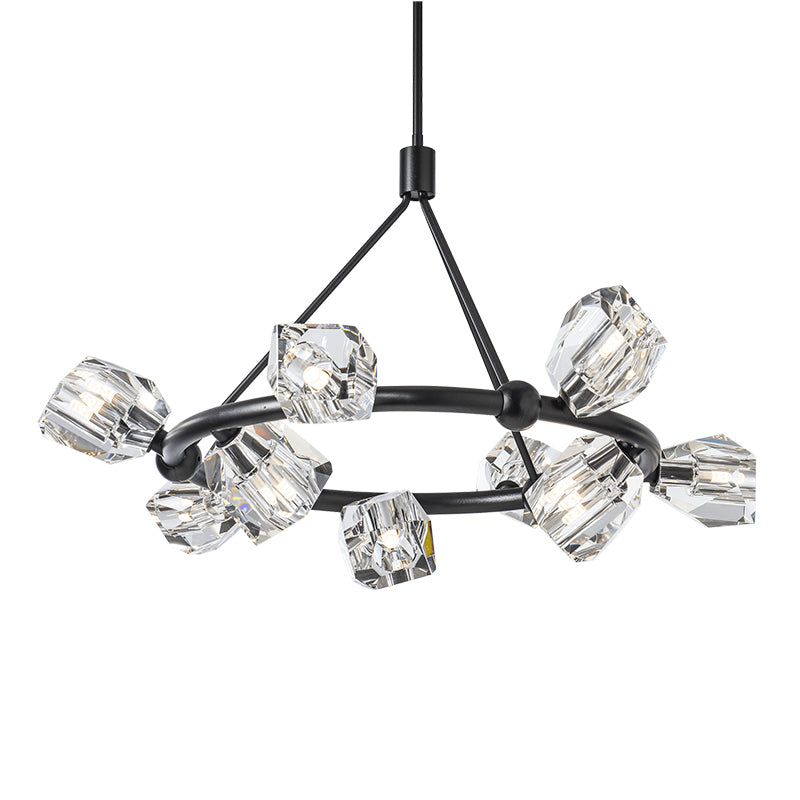 Like treasures, or stone turned to diamond, nine stunning faceted crystals are lit from within and directed upward and downward in a circular fashion with the Gatsby 9-Light Ring Pendant, providing luxurious lighting in any space.