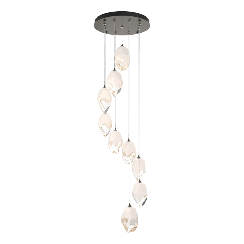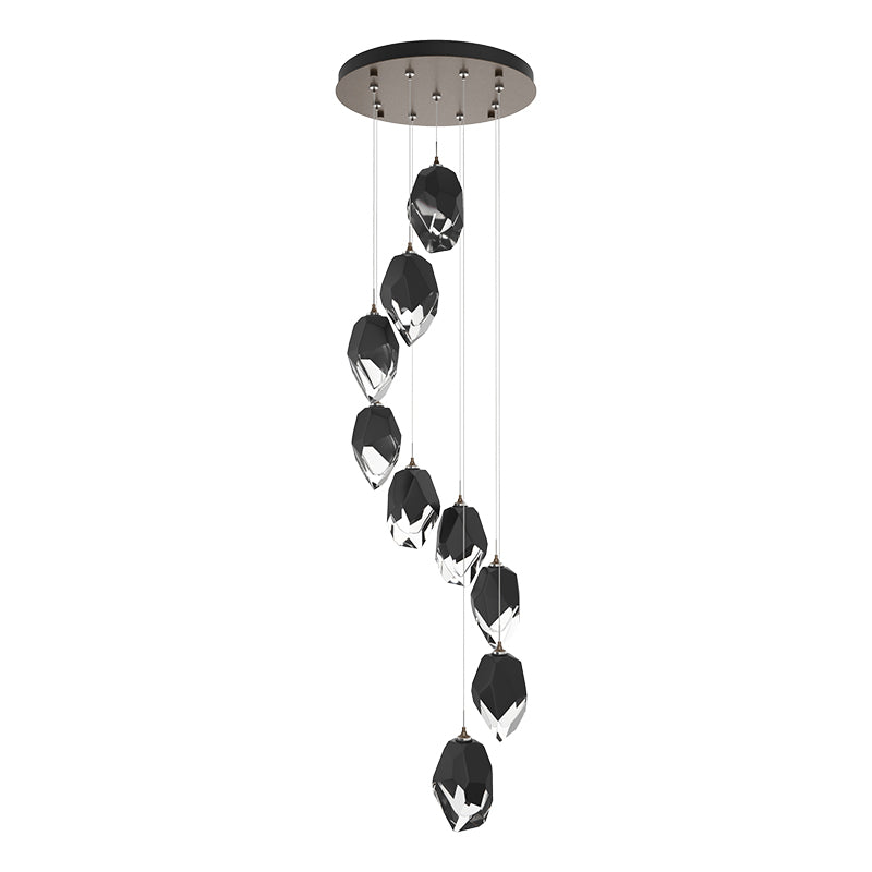 The Chrysalis 9-Light Mixed Crystal Pendant makes a statement in any stairwell or other central or corner space where cascading crystals lit from within create a waterfall of light when pendants are staggered.