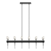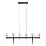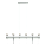 Rough, forged "hands" gently holding a delicate glass flower was the inspiration for the individual elements of the Echo 12-Light Linear Pendant. The look is echoed in this lighting fixture creating a harmonic blend of alternating lengths. The glass is thick and frosted, perched on a delicate stem.