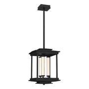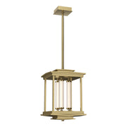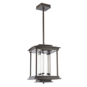 The Athena 3-Light LED Lantern features 3 LED modules within a rectangular, open metal structure, optimizing functional lighting in a modern lantern-style pendant. Three fluted, clear glass tubes over inner opal glass cylinders containing the LED components are suspended between conductive perches at top and bottom.