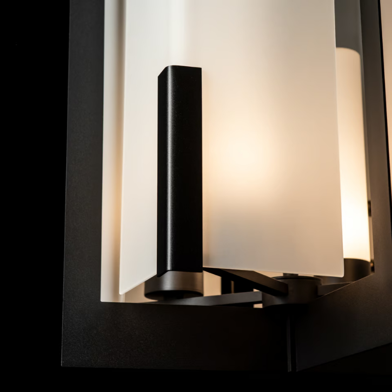 Looking for a traditional lantern with a contemporary twist? The Summit is a large scale interior lantern featuring four lit frosted cylinders within large, clear vertical rectangular glass. Intersecting steel plates give a modern, dramatic feel, with both glass and steel elements having clean 90ΒΊ angles.