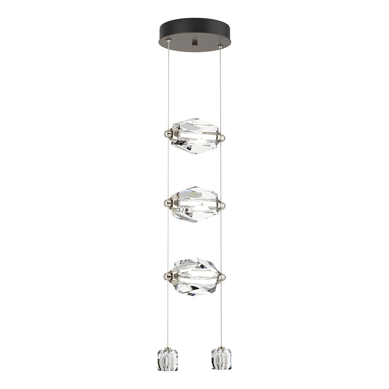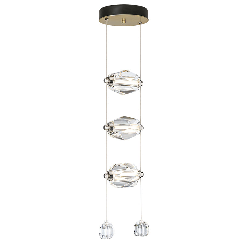 Simply beautiful. The Gatsby 3-Light LED Pendant features three, large crystals positioned horizontally between two low-voltage cables that power the LED array within. Two smaller crystals serve as endpoints for each cable, weighting them while delivering a luxurious element all the while.