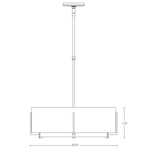 The double-shade design housing four bulbs in this square pendant delivers the sleek, clean and minimalistic elegance the Exos Collection is known for. Concentric shades are cradled by hand-forged steel bars.