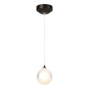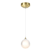 A single, low-voltage pendant that oozes femininity. The Fritz Globe 1-Light Mini Pendant features a graceful glass sphere that is etched on the inside, for a subtly diffused light, with a heavily-textured bottom of the outer glossy surface that is achieved with fritted glass for dramatic effect. Something so lovely and delicate makes a big statement.