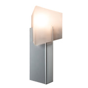 Beauty in a small package. The Prisma 1-Light Bath Sconce features a slumped white art glass combined with a vertical, very geometric metal element. The 90º angles of glass and metal are inverted layer-over-layer, with vertical metal pieces that secure the glass. Clean lines and simplicity make this a winner with any style.