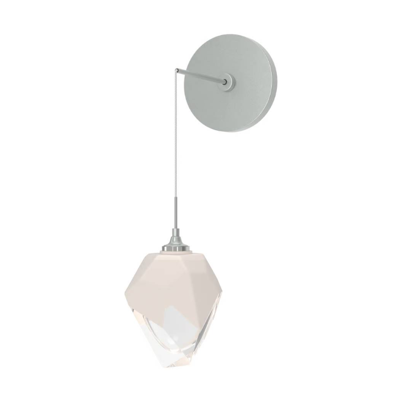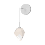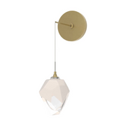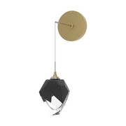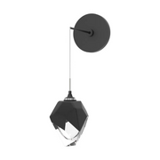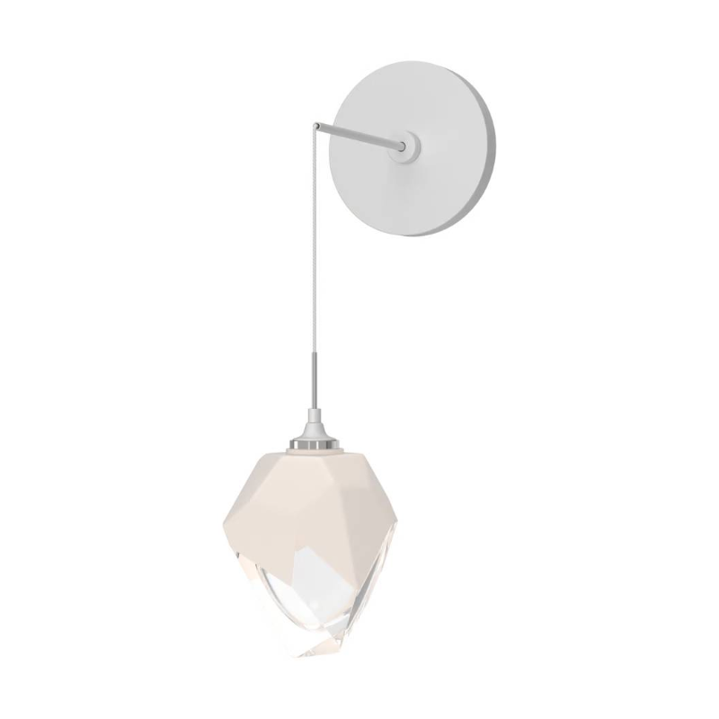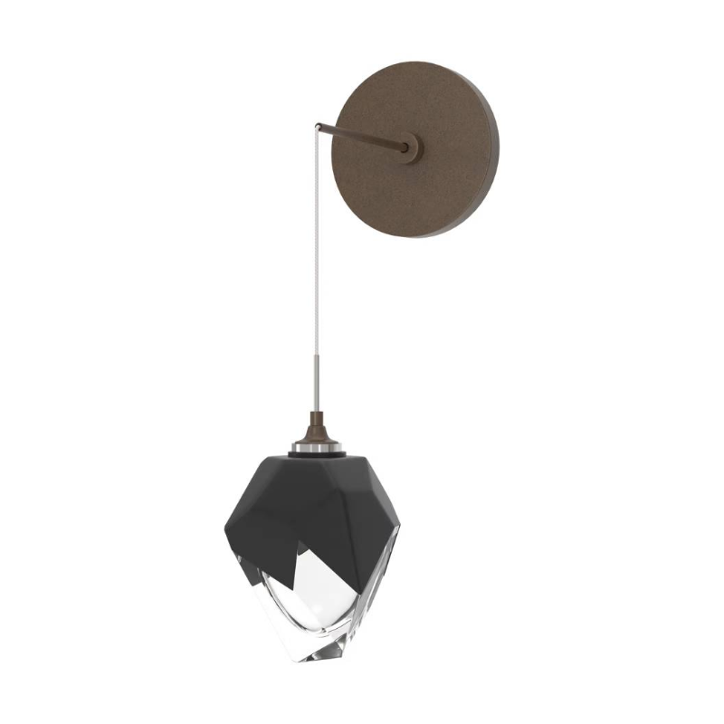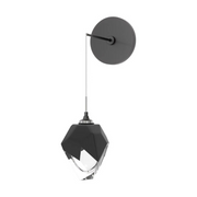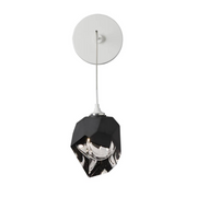 The Chrysalis Small Low Voltage Sconce features a small, handcrafted faceted glass crystal. You can custom-set the drop height, creating unique opportunities for vanity, beside and other applications. The Chrysalis’ trademark thick, clear layer of glass is encased in an outer layer of hand-blown, colored glass (matte black or white). Hand-polished like a gemstone, the lower portion of the outer layer of glass is removed to reveal the inner crystal clear layer below that is lit from within.
