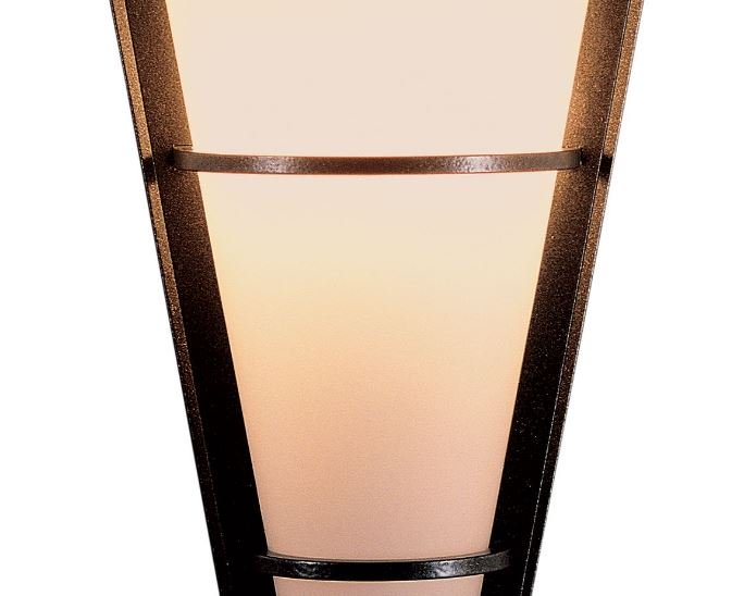 The glass is the focus of our Cone Sconce. Three strips of hand-shaped steel clasp the cone. With the combination of the V-shape of glass and mounting plate and the three bands, the shape of cast light looks fantastic.