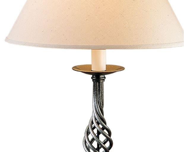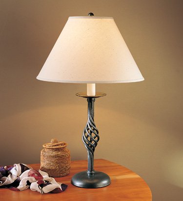 A traditional design with a literal twist, the modern blacksmiths here at our forge have crafted the twist basket design of yesteryear to adorn today's rooms. This table lamp displays forging at its finest.